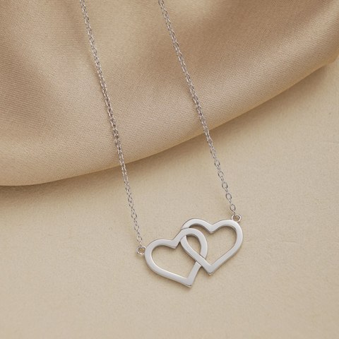 925スターリングシルバージュエリーネックレスダブルハートペンダントレディースハートジュエリーギフトクラシックペンダントネックレス