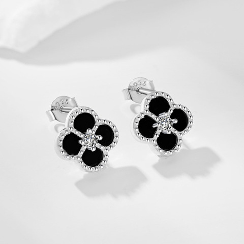 エレガントで繊細なS925スターリングシルバーマイクロジルコン四つ葉のクローバースタッドピアス女性用ジュエリー